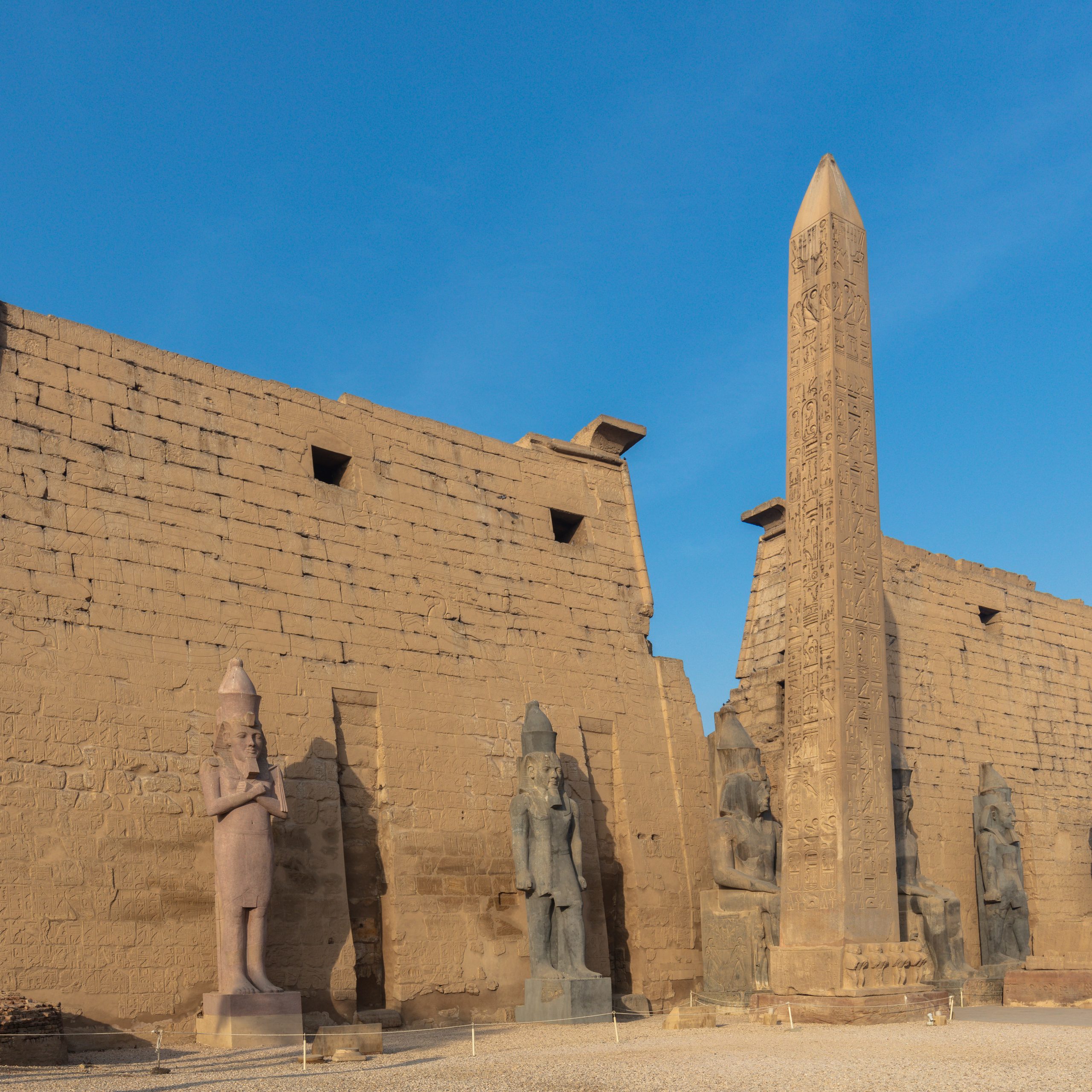 hermosos del país, reconocible por su característica escalinata en rampa. Pasamos por los Colosos de Memnon en el